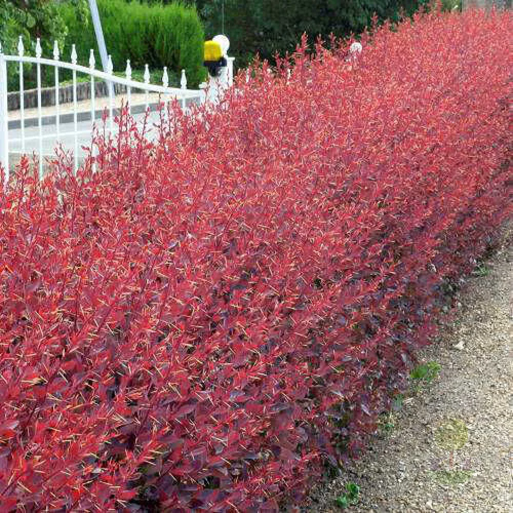 - Листья: мелкие овальные, насыщенно пурпурно‑красные вегетационный сезон; осенний окрас — оранжево‑красный, розово‑красный. Цвет и интенсивность окраски усиливаются на солнечном месте.