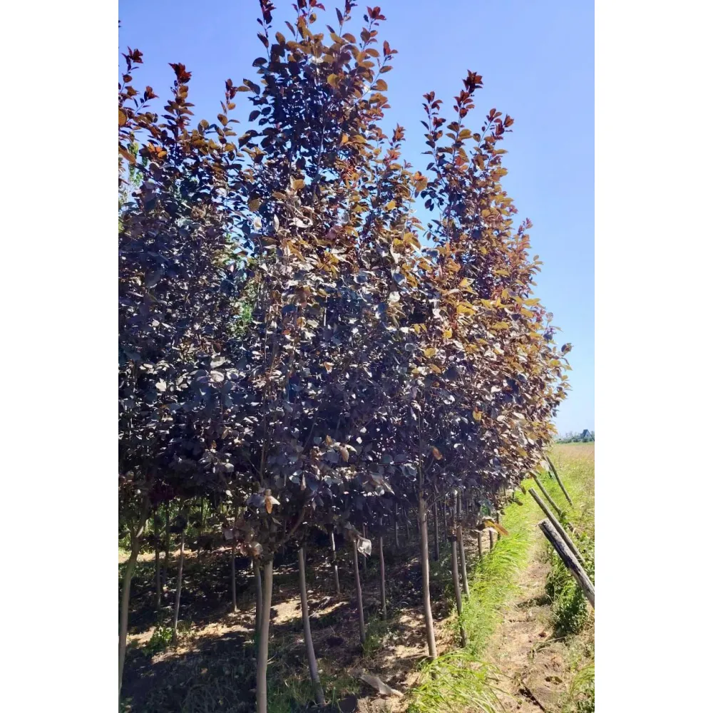 - Крона: компактная, округлая; декоративная пурпурная листва.