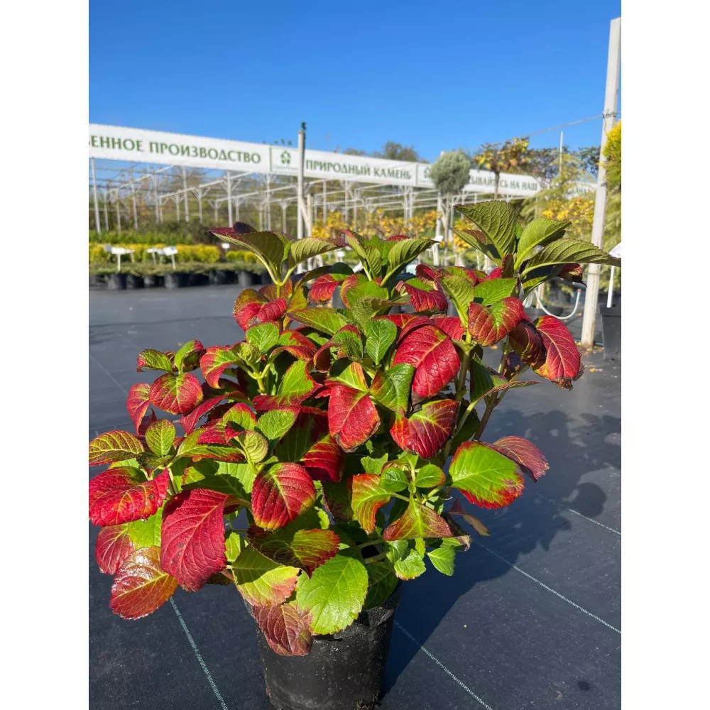 - Цвет: насыщенно‑красный (шаровидные mophead соцветия).