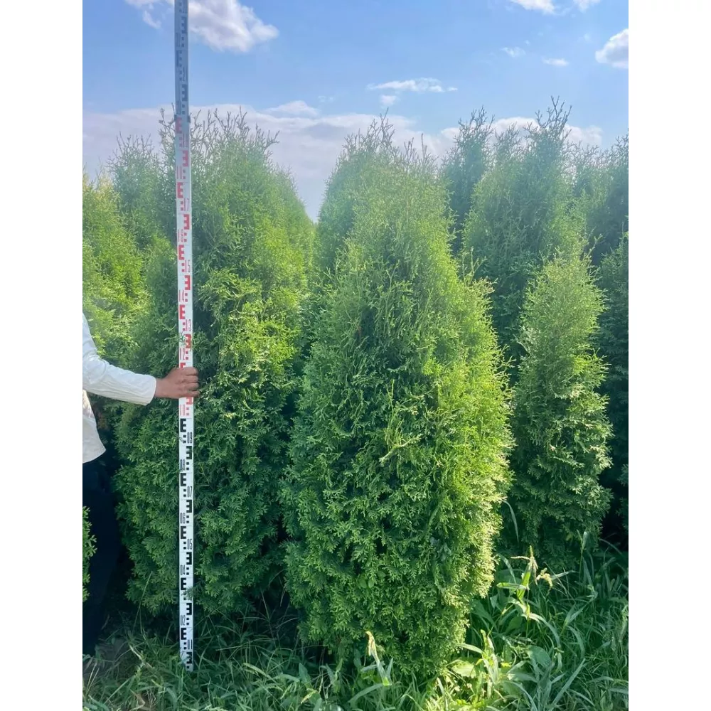 Туя западная 'King of Brabant', высота 1,6–1,8 м — крепкий пирамидальный куст с плотной вечнозелёной хвоей, отлично подходит для живых изгородей, зелёных экранов и аллей. Растёт быстрее многих других сортов туй, формирует компактную плотную крону и легко переносит формирующую стрижку, что делает его идеальным для одиночных посадок и групповых композиций.