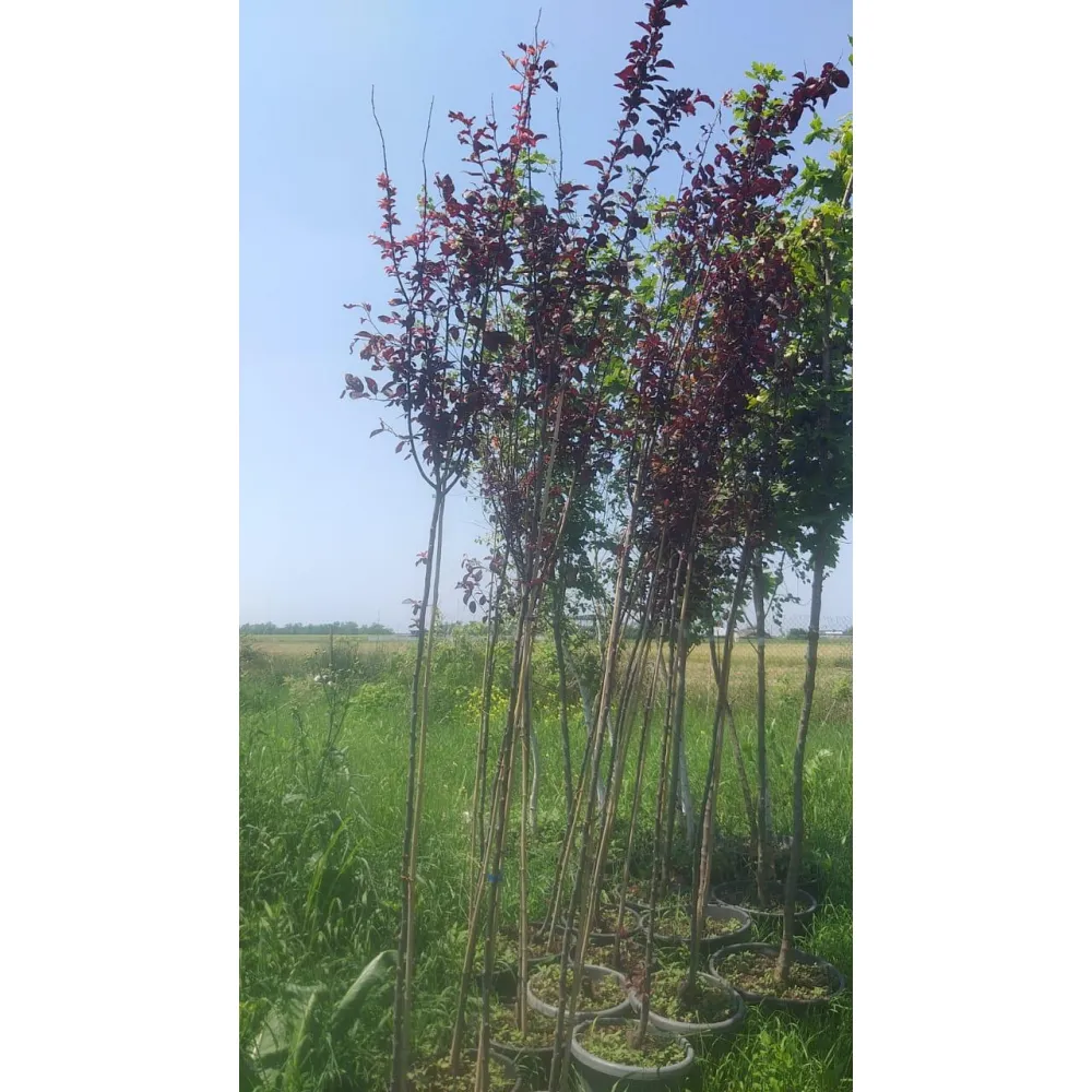 Слива растопыренная "Писсарди" (высота 2,5–3 м) — эффектное лиственное декоративное дерево с насыщенно‑бордовой листвой и обильным весенним цветением. Отлично подходит для акцентов в саду, оформления аллей и живых изгородей; устойчиво переносит формовку и стрижку. В осенний период образует декоративные плоды и контрастную окраску листьев, привлекающую внимание круглый сезон. Предлагаем саженцы в контейнере и ОКС, с проверенными фото текущих экземпляров, профессиональной упаковкой и доставкой по регионам. Поможем выбрать экземпляр под ваш участок — оформите заказ или запросите дополнительные фото.