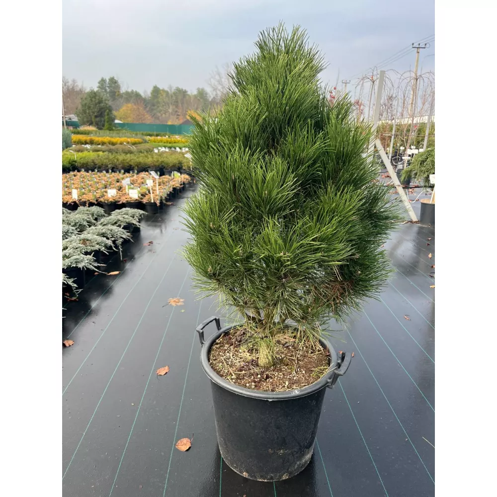 Сосна чёрная «Green Tower» — компактный колонновидный сорт с плотной, вытянутой кроной и насыщенной тёмно‑зелёной хвоей. Идеальна для оформления узких участков, входных групп, аллей и формирующих живых изгородей, а также смотрится эффектно как одиночный вертикальный акцент. Растение отличается хорошей зимостойкостью и устойчивостью к городским условиям, хорошо переносит формирующую стрижку и придаёт структуру композициям любого масштаба.
